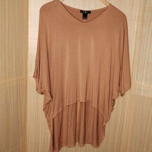 J.A.C. women’s oversized bat wing short sleeve high low stretchy top small. Very oversized and super soft this could probably fit up to a large. Gently used condition. Measurements are: 25” from shoulder to shortest part of hem, and 33” approx. from armpit to armpit.