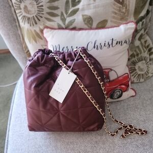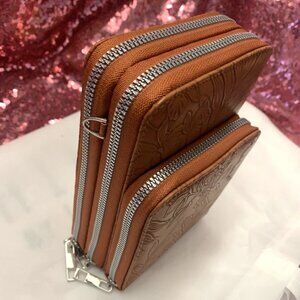 JACD Brown Woven Vegan Leather Bucket Crossbody Bag Woven Square design
