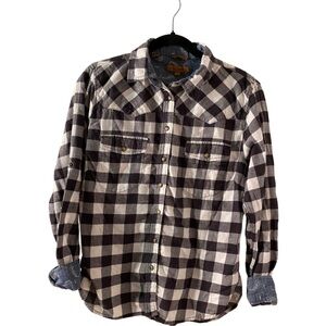 JACHS Girlfriend Buffalo plaid flannel shirt. Size M. Black/white check.