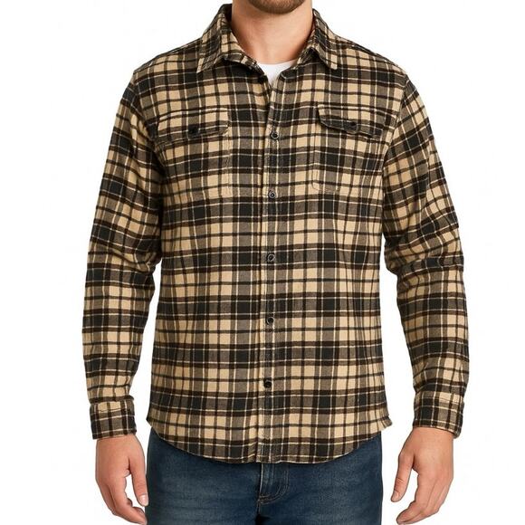 JACHS Heavyweight Tan Brown Plaid Flannel Shacket Men’s Medium