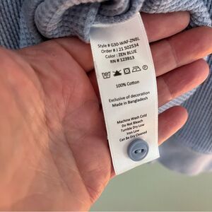 LIGHT BLUE WAFFLE LONG SLEEVE HENLEY-Size Large Spare button inner tag front pocket
