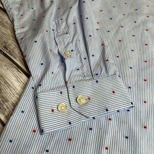 J.A.C.H.S. Manufacturing Co. Button Down Shirt Size 16.5 34-35 Red White & Blue