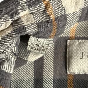 JACHS Men’s Button Front Plaid Flannel Gray Tan Shirt Size Large 100% Cotton