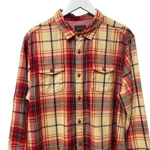 JACHS Mens Shirt Size Large 100% Cotton Red Plaid Long Sleeve Button up Utility