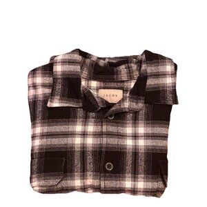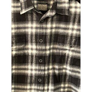 Pit to pit 25”. The JACHS Shirt is a men's extra-large black, gray, and white button-up shirt made of cotton with a plaid pattern. It features a collared neckline and long sleeves, making it suitable for casual occasions. The classic fit and spread collar style add to the shirt's timeless charm, while the easy-care fabric ensures low maintenance. Perfect for all seasons, this JACHS shirt is a versatile and stylish addition to any man's wardrobe.