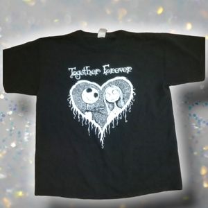 💀☠️🖤🤍🧡🕸️NMBC "Together forever" jack and Sally skellington tee NWOT size large