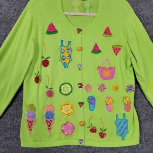 JACK B QUICK Green Novelty Beach Fruit Summer Themed Cardigan SIZE LARGE