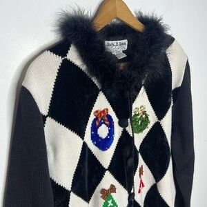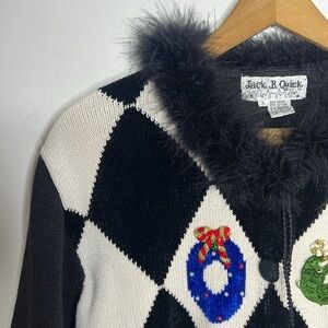 JACK B. QUICK Vintage 90s Christmas Novelty Holiday Feather Collar Cardigan
