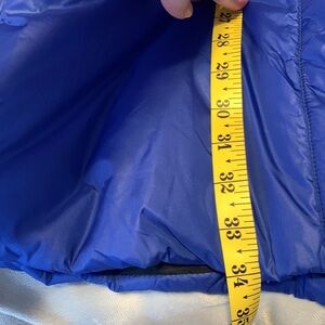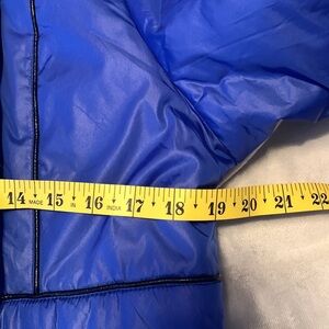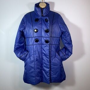 Jack by bb Dakota puffy cobalt blue Mikitary double breasted zip up puffy insulated medium length winter coat.