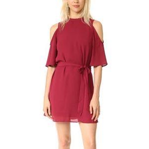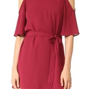 Maroon could shoulder dress. Brand new with tags. Dress is missing sash around waist. Fully lined.