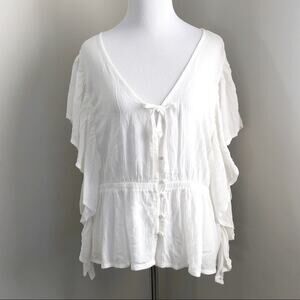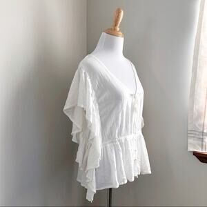 JACK BY BB DAKOTA NWT On A Cruise Crinkle Flutter-Sleeve White Top Size L