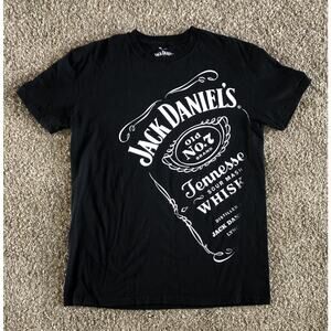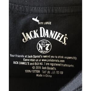 This product is a large black Jack Daniel's tee shirt featuring the Old No 7 brand Tennessee Sour Mash Whiskey logo. Made of cotton fabric with a round neckline and short sleeves, it is designed for men and has a regular fit. The shirt has a graphic print and is machine washable. Perfect for all seasons, this shirt is a stylish and comfortable option for fans of Jack Daniels Whiskey looking to advertise their favorite brand.