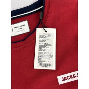 JACK & JONES Mens UK XLarge Core Logo T-Shirt Top Red Blue Stripes NWT
