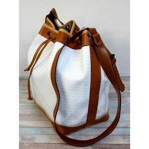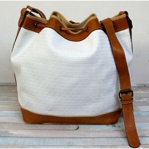 JACK & JONES WHITE SIGNATURE VINYL TAN BROWN REAL LEATHER DRAWSTRING SHOULDER BAG CROSSBODY BACKETBEIGE GENUINE LEATHER LINED