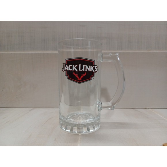 JACK LINKS HANDLED CLEAR BEER MUG 6" tall