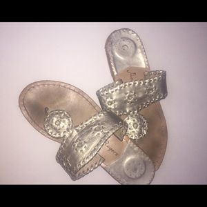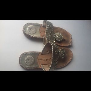 JACK RODGERS!!! THEY HAVE A TEAR IN THEM AT THE TOP OF THE LEFT SHOE AS SHOWN IN PICTURES. VERY PRETTY SHOES THOUGH. SIZE 4 KIDS/ WOMENS 5. WILL NEGOTIATE PRICE!!!! CHEAPER ON MERCARI -ASHLEYANE!!!