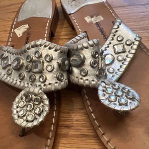 JACK ROGERS 10 M Limited Edition Bling Stone Diamond Silver Sandals Hamptons