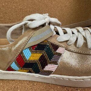 JACK ROGERS Ainsley Chevron Beaded Sneaker in Metallic Gold Womens EU 40 / US 9