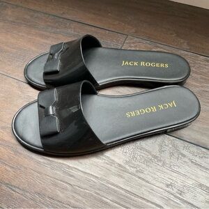 JACK ROGERS Black Bow Jelly LOGO FLIP FLOPS Slides Size 8