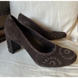 JACK ROGERS Chocolate Brown Suede Pumps Heels Size 8/9 stitched classy suede