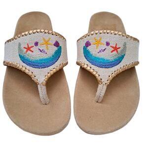 JACK ROGERS Embroidered Beach Thong Comfort Sandals Size 7 Preppy Coastal Beige