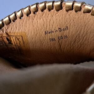 The footbed is molded with the edges curved upward to hug and support the heel. Beige/sand with blue, orange, & purple embroidery.