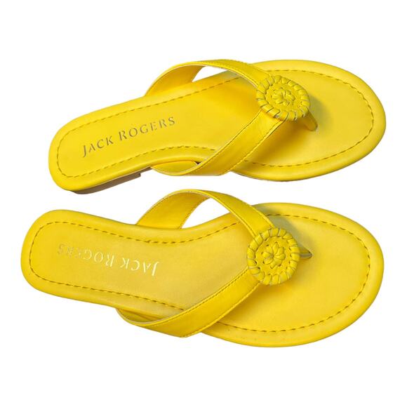 JACK ROGERS Rowan Leather Flip Flops Padded Insole Slip On Yellow 6