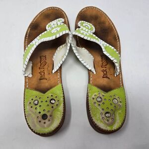JACK ROGERS USA VINTAGE JACKS FLATS LIME GREEN WHITE WOMENS SANDALS SIZE 9 M