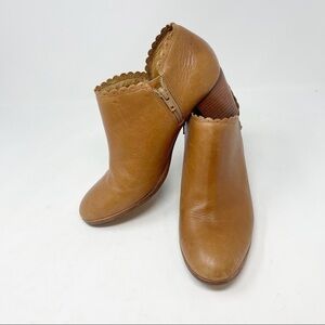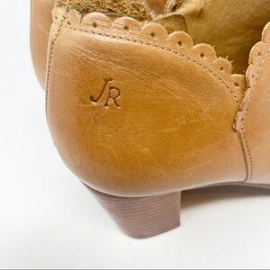 JACK ROGERS Womens MARIANNE SCALLOPED BOOTIES in Oak Brown Leather Size 9.5. Good pre-owned condition. See photos. All measurements are approximate.