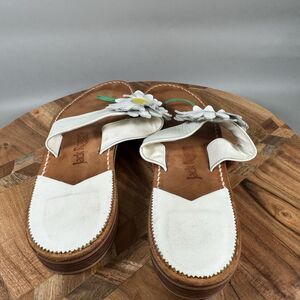 JACK ROGERS Women's Signature Flat Thong Sandal White Flower Size 10
