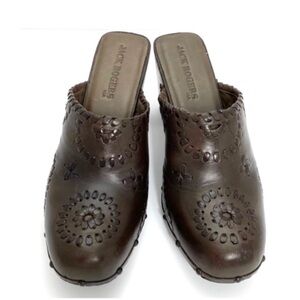 Jack Rogers Ali Clogs Wood Chunky Heel Platform Leather Mule Sandal in Chocolate Brown