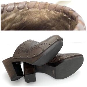 JACK Rogers Ali Clogs Wood Chunky Heel Platform Leather Mule Sandal in Brown