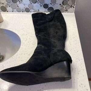 JACK Rogers woman’s black suede zip up in the back wedge knee high boots