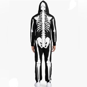 SPACIOUSLY SPOOKY Our Skeleton Costume Jumpsuit for Halloween will have you feeling and looking your very best for any spooky occasion. Whether you want to wear it for a party or stay comfy while trick or treating, the men's skeleton jumpsuit adds some easy extra fun to your attire