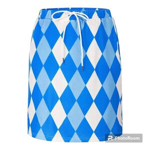 This JACK SMITH women's athletic skort is perfect for any active occasion. The geometric pattern in blue and white is both stylish and sporty, while the pull-on closure and regular fit ensure comfort during any performance or activity, whether it be golf, tennis, or something else. The polyester blend material and blended fabric type make it machine washable and easy to care for, while the pockets provide a practical touch. This midi-length skort is a must-have for any athletic woman looking to stay fashionable and comfortable while staying active.