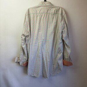 JACK STONE BY THOMAS DEAN button up shirt men XL orange green plaid flip cuff