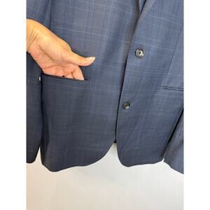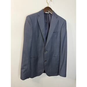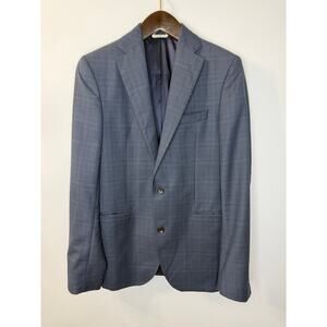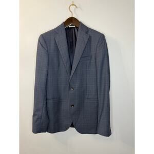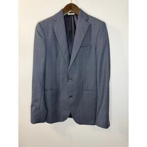 JACK VICTOR Blazer Men 40 L Blue Check Wool Blazer Preppy Office