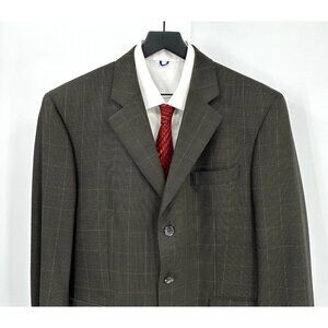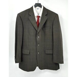 JACK VICTOR jacket blazer sport coat LANZAWOOD windowpane plaid wool green 42R