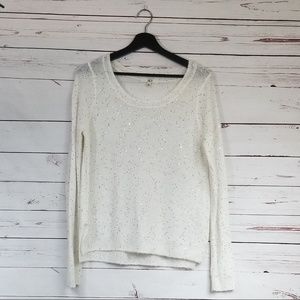 Super adorable lightweight sweater. White bbn in color with gray sequins for an added sparkle.