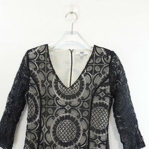 JACK x BB DAKOTA Dress Black Sheath Mini 2 XS Sunflower Lace 3/4 Sleeve Stretch