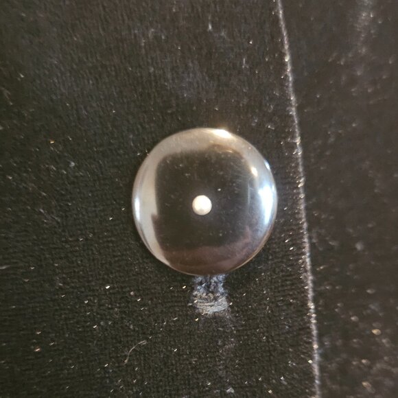 This is a lightweight velvet versatile vintage jacket to wear over gowns or with jeans. It has thin removable shoulder pads and beautiful black buttons with a silver center. Its approximately size 10, labeled medium.