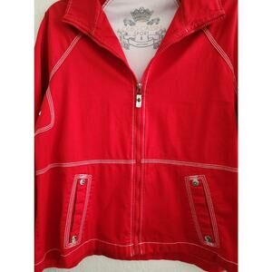 JACKET-OLEG CASSINI-Red-White Mesh Lining-Zippers-Designer-Size Small