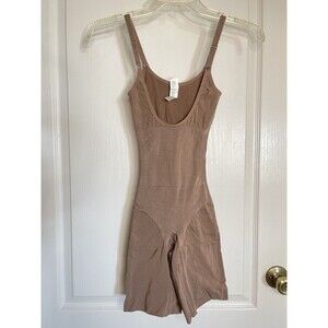 Jackie London REF: 200 Seamless Shorts Bodysuit with High Back Coverage in Mocha, size 2XS/XS, designed to smooth and enhance your curves with seamless comfort.