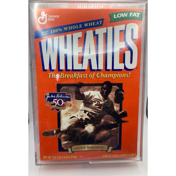 JACKIE ROBINSON WHEATIES 1997 UNOPENED FULL SIZE BOX WITH PROTECTOR CASE. Please see photos. Box and case in good condition. Some shelf wear and scratches.