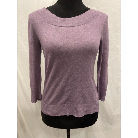 JACLYN SMITH Classic Silk Cashmere 3/4 Sleeve Lilac Knit Pullover Sweater Small
