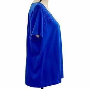 Jaclyn Smith Royal Blue Short Sleeve Sequined Lace Embellished Blouse Women's Size XL