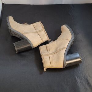 JACLYN SMITH RUBI SUEDE TASSELS DETAIL ANKLE BOOTS SIZE 8 COLOR CREAM SIDE ZIPPER CLOSURE ROUND OPEN BLOCK HEEL MEASUREMENTS APPROX 3"INCHES THIS ITEMS IS PRE-OWNED EXCELLENT CONDITION WITH ONLY LIGHT SIGNS OF WEAR IF ANY CHECK THE PICTURES