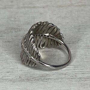 This JACMEL MAURITIUS sterling silver ring from Italy features a modernist design with a white/colorless cubic zirconia main stone. The vintage ring is signed, nickel-free, and handmade, making it a unique and stylish piece for women. The 925 sterling silver base metal and artistic theme of this cocktail ring make it a standout accessory for any jewelry collection.