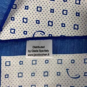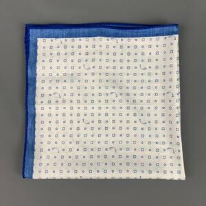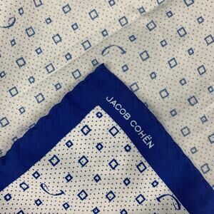 JACOB COHEN White Blue Print Cotton Silk Pocket Square