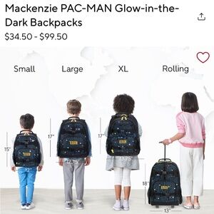 Size Small, Pottery Barn Kids backpack with Pac-Man graphics. Glow in the dark. Size details are in photos.